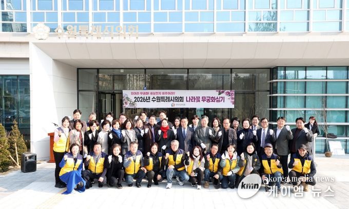 (케이엠뉴스) 수원특례시의회는 12일 의회 청사 정문 앞에서 '2026년 나라꽃 무궁화 심기 행사'를 개최해 무궁화특화도시 수원의 위상을 알리고 나라꽃에 대한 시민적 관심을 높이는 시간을 가졌다.