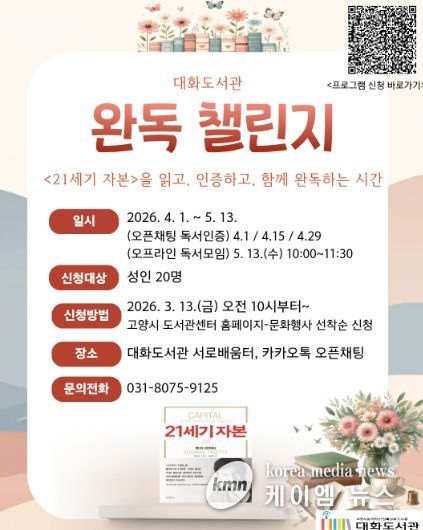 (케이엠뉴스) 고양특례시 대화도서관에서는 시민들의 깊이 있는 독서 경험을 돕기 위해 ‘21세기 자본’을 함께 읽는 ‘완독 챌린지’를 운영한다.