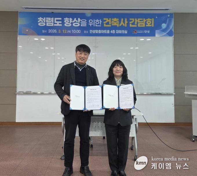 (케이엠뉴스) 안성시는 3월 12일 안성맞춤아트홀 4층 대회의실에서 관내 45개 건축설계사무소를 대상으로 ‘2026년 상반기 건축사 간담회’를 개최하고, 건축 행정의 청렴성과 민원 서비스 개선 방안을 논의했다.