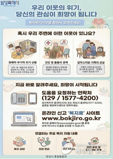정명근 화성특례시장은 “사회적 고립과 고독사는 개인의 문제를 넘어 우리 공동체가 함께 짊어지고 해결해야 할 과제”라며“전수조사와 인공지능을 활용한 스마트 돌봄 체계를 연계해 시민 누구도 소외되지 않고 안심하며 살 수 있는 복지 환경을 구축하겠다”라고 밝혔다.