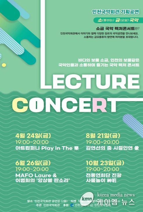 (케이엠뉴스) 공연과 이야기가 함께하는 국악 무대가 인천 시민들을 찾는다. 인천광역시는 시민들이 국악을 쉽고 흥미롭게 즐길 수 있도록 ‘2026 소(통하는) 국악 렉처 콘서트’를 올해 총 4회에 걸쳐 개최한다고 밝혔다.