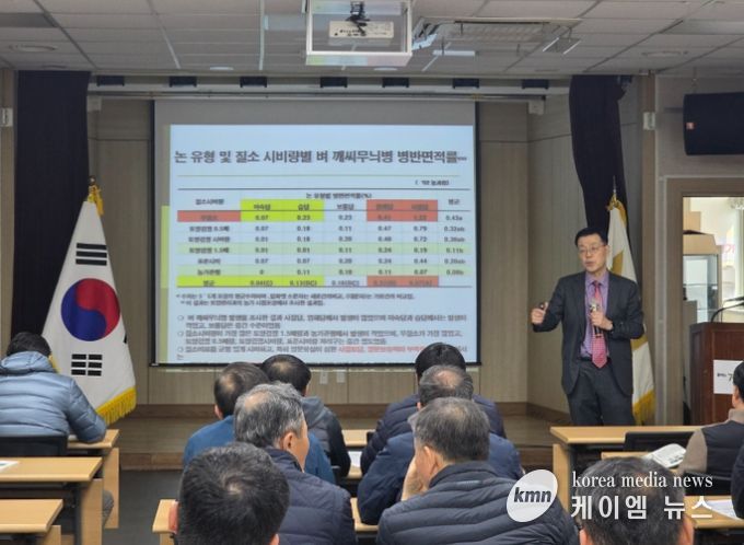 (케이엠뉴스) 김포시농업기술센터가 지난 11일 벼 못자리 관리 기술과 깨씨무늬병 예방 기술에 대한 ‘고품질 벼 안전 재배기술 교육’을 성황리에 마무리했다.