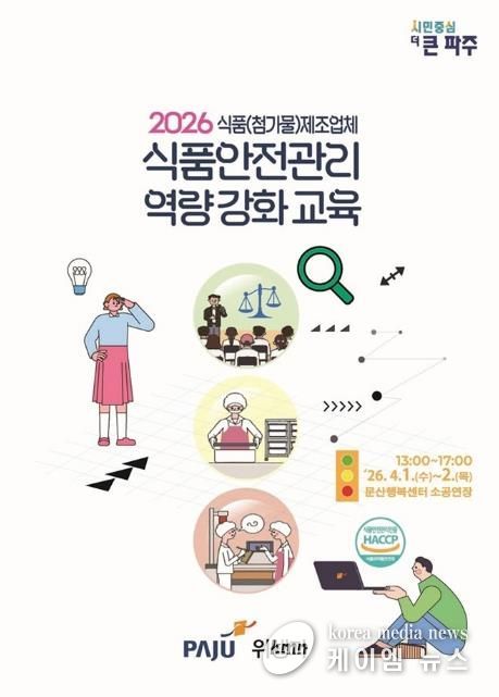 (케이엠뉴스) 파주시는 관내 식품(첨가물)제조업체 영업자 및 종사자를 대상으로 녪년 식품안전관리 역량 강화 교육’참여업체를 모집한다.
