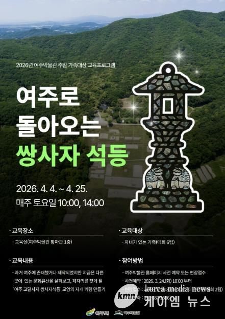 (케이엠뉴스) 여주시 여주박물관은 오는 4월 주말을 맞아 가족이 함께 지역 문화유산의 가치를 배우고 체험할 수 있는 교육프로그램 '여주로 돌아오는 쌍사자 석등'을 운영한다.