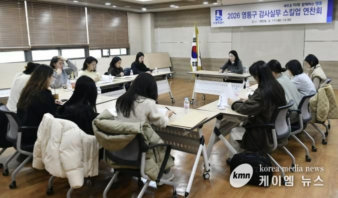 (케이엠뉴스) 수원시 영통구는 지난 17일 동 행정복지센터 실무자 12명을 대상으로 '감사실무 스킬업 연찬회'를 개최했다. 이번 연찬회는 종합감사 과정에서 반복적으로 지적되는 사례를 중심으로 실무 대응 역량을 높이고, 직원들의 전문성을 강화하기 위해 마련됐다.