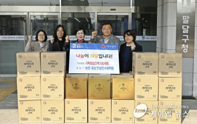 (케이엠뉴스) 수원시 팔달구는 지난 17일, 농협 홍삼 한삼인 수원역점으로부터 기부받은 기력보감 진액 100세트를 관내 취약계층에 전달하며 건강한 나눔 문화를 실천했다.