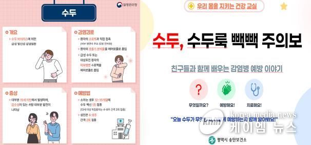 최근 3년간의 평택시 감염병 발생 데이터를 분석해 시기별 유행 가능성이 높은 감염병을 매월 선정하고 특히, 새 학기가 시작되는 3월에는 단체생활로 인해 감염 위험이 높은 ‘수두’를 이달의 감염병으로 선정, 유치원, 초등학교 등에 맞춤형 교육·홍보자료를 제공했다.