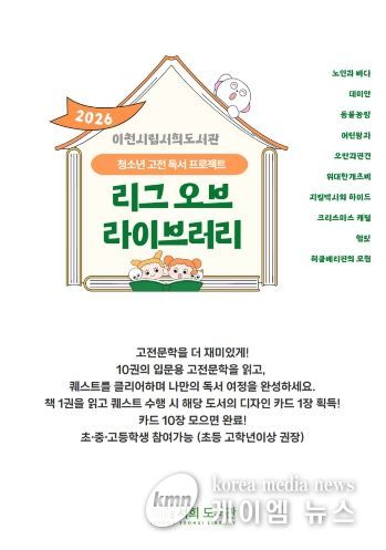(케이엠뉴스) 이천시 서희도서관은 청소년 독서문화 확산을 위해 3월 21일부터 청소년 고전독서 프로젝트를 새롭게 운영한다.