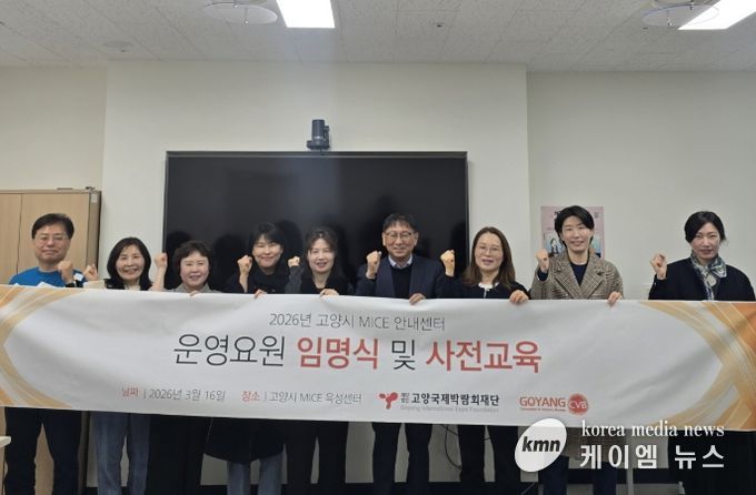(케이엠뉴스) 고양국제박람회재단은 2026년도 고양시 MICE 안내센터 운영을 맡을 중장년 인력 8명에 대한 임명식을 개최하고 본격적인 현장 운영에 돌입했다고 18일 밝혔다.