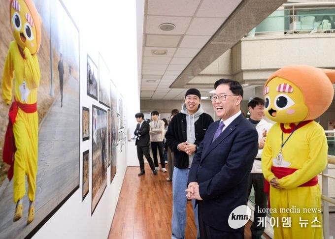 이날 강수현 양주시장은 사진작가 박철, 시 SNS 캐릭터 별산과 함께 전시장을 둘러보며 작품을 관람했다.