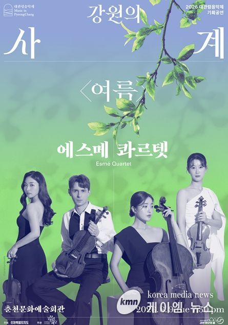 (케이엠뉴스) 강원문화재단은 대관령음악제 기획공연 강원의 사계 '여름' 공연에 세계가 주목하는 현악사중주단 ‘에스메 콰르텟’을 초청해 6월 9일 오후 7시 30분 춘천문화예술회관에서 공연을 개최한다.