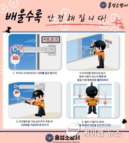 (케이엠뉴스) 홍성소방서는 화재 발생 시 계단 이용이 어려운 상황에서 인명 피해를 최소화하기 위한 피난기구인 ‘완강기’의 올바른 사용법을 안내·홍보하고 있다고 밝혔다.