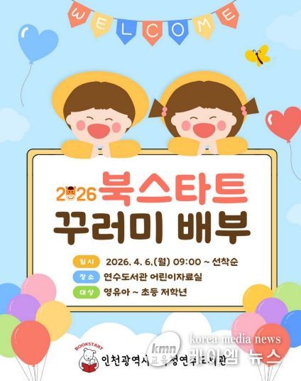 (케이엠뉴스) 인천광역시교육청연수도서관은 4월부터 영유아 및 초등학교 저학년 보호자를 대상으로 ‘2026년 북스타트 사업’을 운영한다.