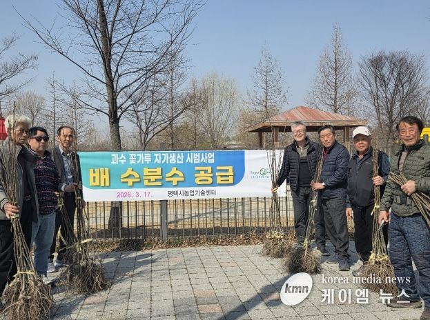 (케이엠뉴스) 평택시는 최근 주요 수입국의 과수화상병 발생에 따라 배 꽃가루 수입 가격 상승에 대응하고, 지역 배 재배 농가의 경영 안정을 도모하기 위해 ‘과수 꽃가루 자가생산 시범사업’과 ‘과수 인공수분 노동력 절감 시범사업’을 추진한다.