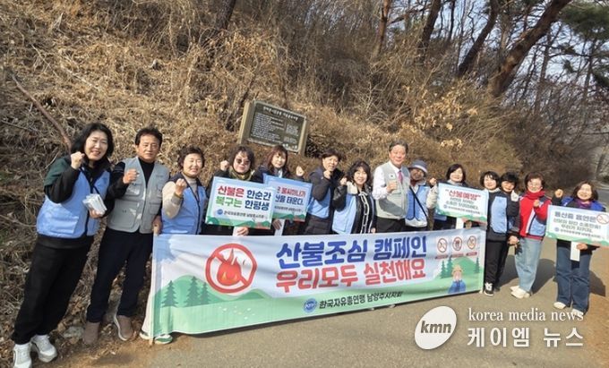 (케이엠뉴스) 남양주시는 지난 16일 호평동 천마산 일대에서 한국자유총연맹 남양주시지회 여성회가 봄철 산불 예방과 시민 인식 제고를 위한 산불조심 캠페인을 실시헸다고 19일 밝혔다.
