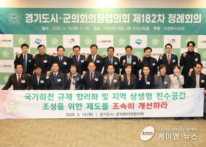 (케이엠뉴스) 경기도시군의회의장협의회 회장인 동두천시의회 김승호 의장이 제안한 '국가하천 규제 합리화 및 지역 상생형 친수공간 조성을 위한 제도 개선 촉구 건의안'이 19일 의정부 아일랜드캐슬에서 열린 제182차 정례회의에서 만장일치로 채택됐다.