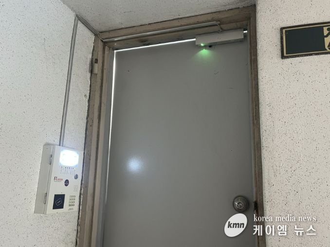 옥상출입문 자동개폐장치는 평상시에는 닫힌 상태로 방범 기능을 수행하고 화재 발생 시 감지기 신호를 받아 출입문이 자동으로 열려 주민들이 옥상으로 신속하게 대피할 수 있도록 돕는 장치다.