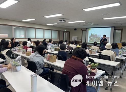 이번 교육은 실내원예 이론과 테라리움, 나만의 반려식물 만들기 실습 등을 배우는 과정으로, 4월 2일부터 5월 21일까지 총 8회에 걸쳐 운영된다.