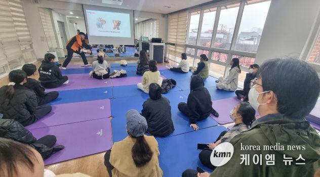 특히 이번 교육은 녩년 한국 심폐소생술 가이드라인’을 적용하여 진행됐다. 참가자들은 이론 교육 후 실습용 마네킹을 활용해 성인 응급처치 뿐만 아니라 ▲영·유아 하임리히법 ▲영·유아 맞춤형 심폐소생술(CPR) ▲자동심장충격기(AED) 사용법 등을 직접 실습하며 긴박한 상황에서의 정확한 처치 요령을 익혔다.