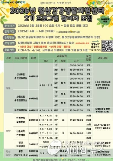 (케이엠뉴스) 광명시 보건소 철산건강생활지원센터가 ‘2026년 건강생활 프로그램 2기’ 참가자를 오는 25일 오전 9시부터 선착순 모집한다.