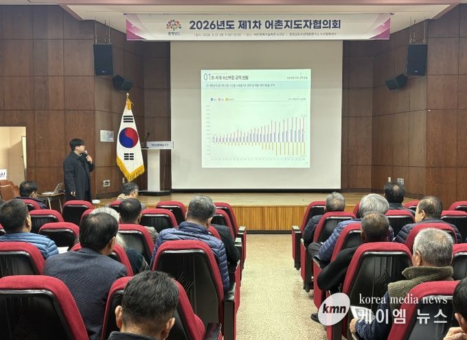 (케이엠뉴스) 충남도 수산자원연구소 수산질병센터는 20일 도내 각 지역 어촌계장 및 우수 지도자 130여 명이 참석한 가운데, 2026년 제1차 어촌지도자협의회를 개최했다.