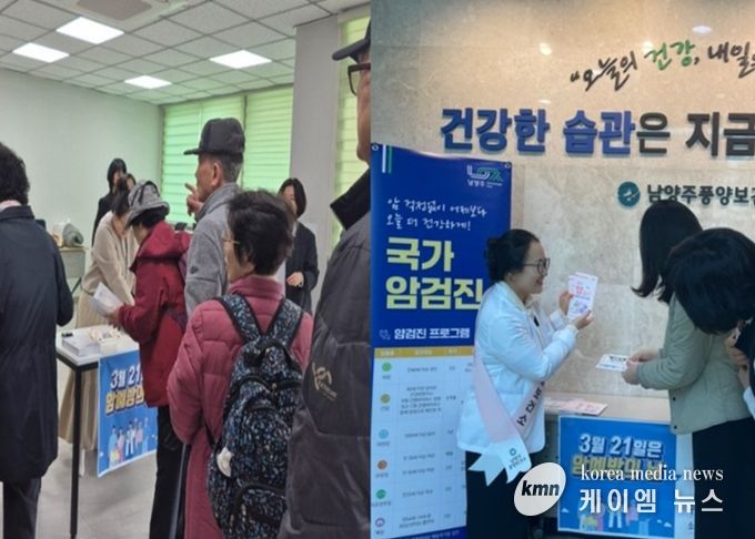 (케이엠뉴스) 남양주시는 17일과 20일 남양주풍양보건소가 ‘암 예방의 날’을 맞아 별내보건지소와 보건소 방문자를 대상으로 국가건강검진 수검 독려 캠페인을 실시했다고 밝혔다.