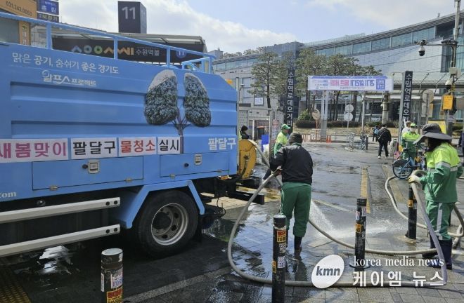이날 정비는 겨우내 쌓인 도로 위 미세먼지와 생활 오염물을 씻어내고, 봄철 유동 인구 증가에 대비해 도시 이미지를 한층 밝게 가꾸기 위해 추진됐다. 특히 출퇴근과 상권 이용이 집중되는 수원역 주변 보행로와 이면도로, 버스정류장 인근 구간까지 세심하게 청소 범위를 넓혀 진행됐다.