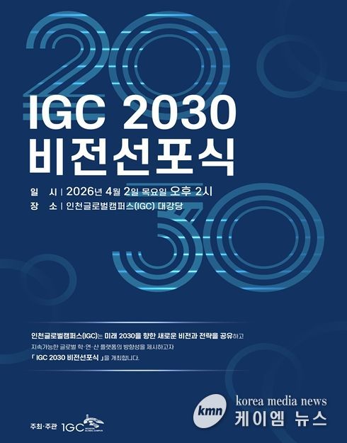 (케이엠뉴스) 인천글로벌캠퍼스운영재단은 오는 4월 2일, 미래 2030년을 향한 새로운 이정표를 세우는 ‘IGC 2030 비전선포식’을 개최한다고 밝혔다.