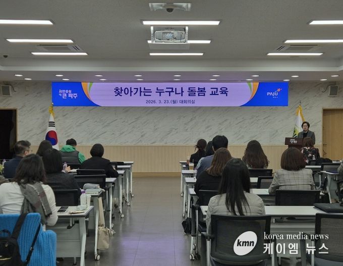 (케이엠뉴스) 파주시는 지난 23일 읍면동 누구나돌봄 담당 공무원 및 서비스 제공기관 관계자를 대상으로 ‘찾아가는 누구나돌봄 교육’을 실시했다.