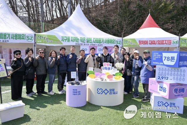(케이엠뉴스) 양평군은 지난 21일부터 22일까지 이틀간 열린 제27회 양평단월고로쇠축제에서 군이 자체 제작한 다회용기 12만 개를 사용해 약 5.6톤의 탄소를 감축했다고 밝혔다. 이는 소나무 약 45그루가 60년간 흡수하는 이산화탄소량에 해당하는 수준이다
