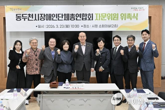 (케이엠뉴스) 동두천시는 지난 23일 시청 2층 소회의실에서 동두천시장애인단체총연합회 자문위원 위촉식을 개최하고, 장애인복지 정책 자문을 위한 협력체계를 강화했다고 밝혔다. 이날 위촉식에서는 장애인복지 분야에 전문성과 경험을 갖춘 인사 8명이 자문위원으로 위촉됐으며, 위촉장 수여와 함께 향후 운영 방향에 대한 논의가 이루어졌다.