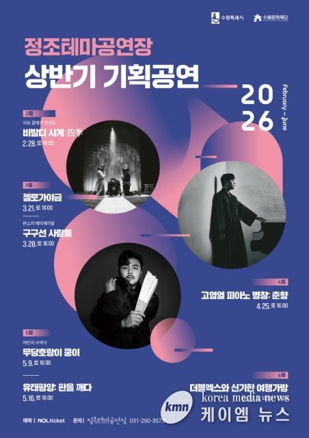 (케이엠뉴스) 수원문화재단은 오는 4월부터 6월까지 정조테마공연장에서 전통예술의 현대적 확장을 주제로 한 기획공연 4편을 선보인다.