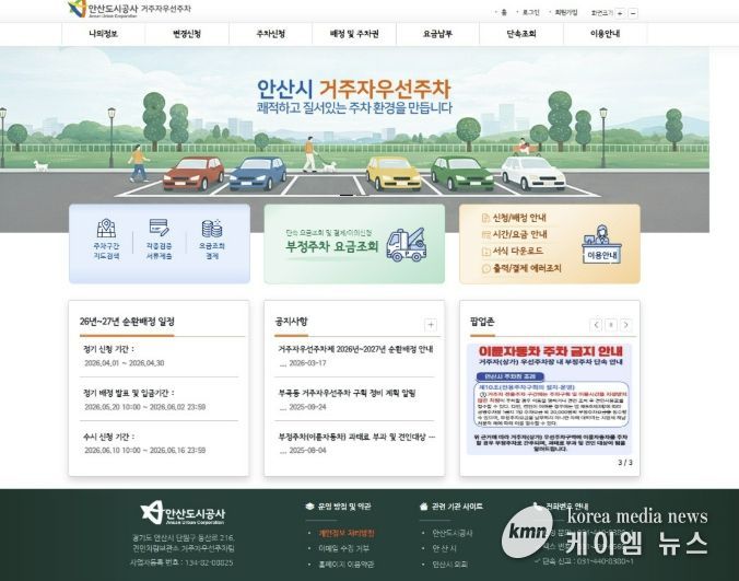 (케이엠뉴스) 안산도시공사는 거주자우선주차장 운영 서비스를 전면 개편하고, 내달 1일부터 한 달간 ‘2026년 순환배정’ 신청을 접수한다고 24일 밝혔다.