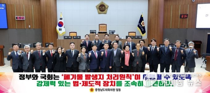이에 충남도의회는 ▲발생지 처리 원칙의 실질적 이행을 위한 강제력 있는 법·제도적 장치 마련 ▲수도권 폐기물의 지방 이전 구조 개선 및 폐기물 처리 공공성 강화 법률 추진 ▲국가 책임 아래의 공공 폐기물 처리시설 확충및 주민 지원·상생 제도 법제화 등을 정부와 국회에 촉구했다.