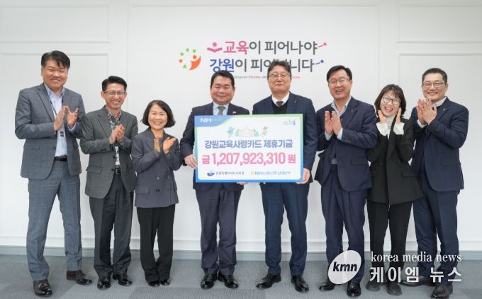 (케이엠뉴스) 강원특별자치도교육청은 24일, NH농협은행 강원본부(본부장 이명호)로부터 강원교육사랑카드 제휴기금을 전달받았다.