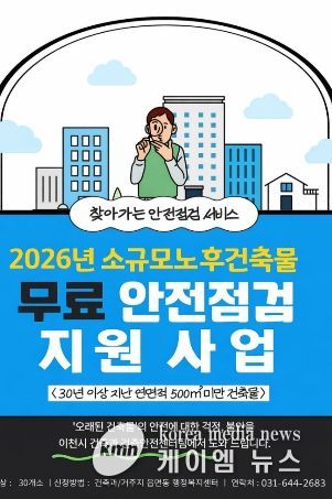(케이엠뉴스) 이천시는 건축물 노후화로 인한 안전사고를 예방하고 시민 안전을 강화하기 위해 ‘2026년 찾아가는 소규모 노후건축물 안전점검 지원사업’을 추진한다고 밝혔다.