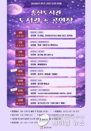 (케이엠뉴스) 화성시문화관광재단 송산도서관은 오는 4월부터 12월까지 지역 주민들에게 풍요로운 문화 체험의 기회를 제공하는 연간 상설 공연 프로그램 '도서관 속 공연장'을 운영한다.