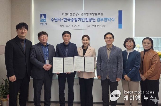 (케이엠뉴스) 수원특례시와 한국승강기안전공단 수원지사는 24일 수원시청에서 ‘어린이집 승강기 손 끼임 사고 예방을 위한 업무협약’을 체결하고, 어린이집 내 영유아의 안전한 보육 환경을 조성하기 위해 협력하기로 했다.