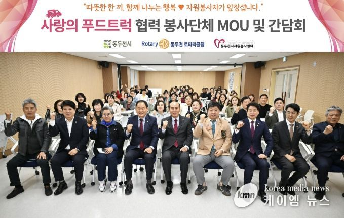 (케이엠뉴스) 동두천시자원봉사센터는 지난 24일 생연공유누리센터 강당에서 12개 자원봉사단체와 동두천 로타리클럽이 참여한 가운데 ‘사랑의 푸드트럭’ 운영 활성화를 위한 업무협약(MOU)과 간담회를 개최했다.