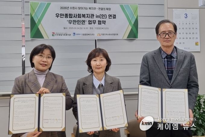 (케이엠뉴스) 수원시 팔달구 지동은 지난 24일, 우만종합사회복지관, 지동 지역사회보장협의체와 함께 '2026년 수원시 찾아가는 복지관 사업' 추진을 위한 업무협약을 체결했다.