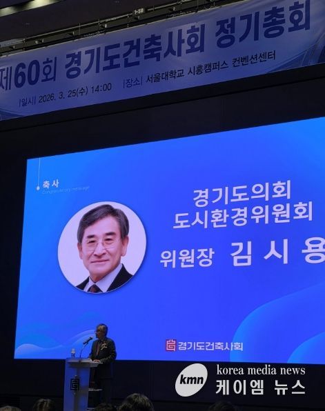(케이엠뉴스) 경기도의회 도시환경위원회 김시용 위원장(국민의힘·김포3)은 25일 경기도건축사회 제60회 정기총회에 참석해 건축 분야 발전을 위해 헌신해 온 관계자들에게 감사와 격려의 뜻을 전했다.