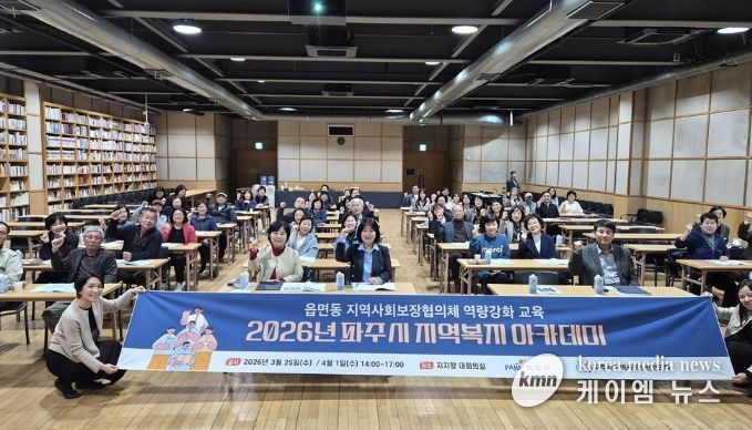 (케이엠뉴스) 파주시는 지난 25일 파주출판단지 ‘지혜의 숲’대회의실에서 읍면동 지역사회보장협의체 위원의 역량 강화를 위한 녪년 파주시 지역복지 아카데미’를 개최했다.