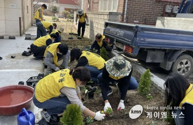 (케이엠뉴스) 수원시 장안구 새마을지도자영화동협의회는 지난 26일, 관내 손바닥 정원 중 하나인 ‘별무리 정원’에서 새봄맞이 환경정비와 꽃 심기 활동을 진행햇다.