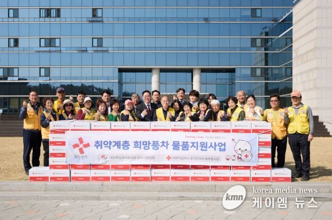 (케이엠뉴스) 대한적십자사봉사회 양주시협의회(회장 정진수)는 지난 25일 시청 원형광장 앞에서 ‘희망풍차 물품 전달식’을 개최했다.