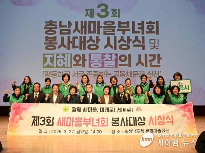 (케이엠뉴스) 김태흠 충남도지사는 27일 도청 문예회관에서 열린 제3회 충남새마을부녀회 봉사대상 시상식에 참석, 지역사회를 위해 헌신해온 부녀회장들을 격려했다.