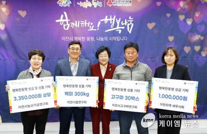 (케이엠뉴스) 이천시는 지난 3월 25일, 지역사회를 위한 따뜻한 나눔이 이어졌다고 밝혔다. 이천시쌀연구회, 이천시 고구마연구회, 이천시 농산가공연구회, 이천지역 세무사회가 최근 ‘행복한 동행 이천시’를 통해 후원 물품을 기탁하며 나눔을 실천했다.