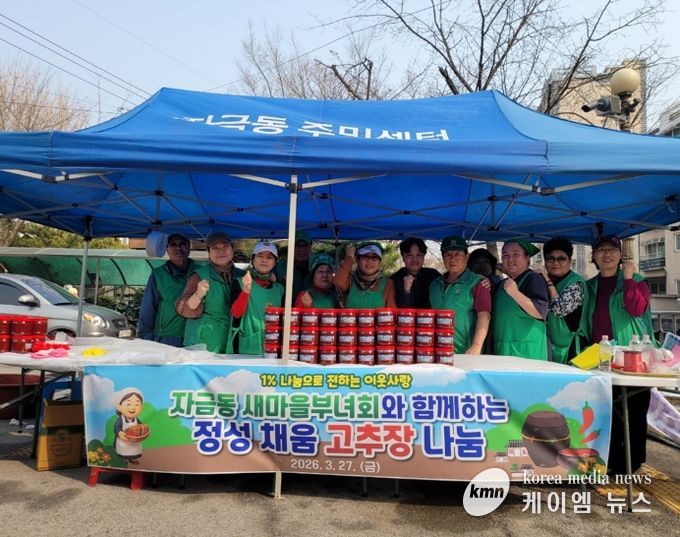 (케이엠뉴스) 의정부시 자금동주민센터는 3월 27일 자금동 새마을부녀회가 관내 어려운 이웃들을 위해 고추장 60통을 기탁하며 따뜻한 나눔을 실천했다고 밝혔다.