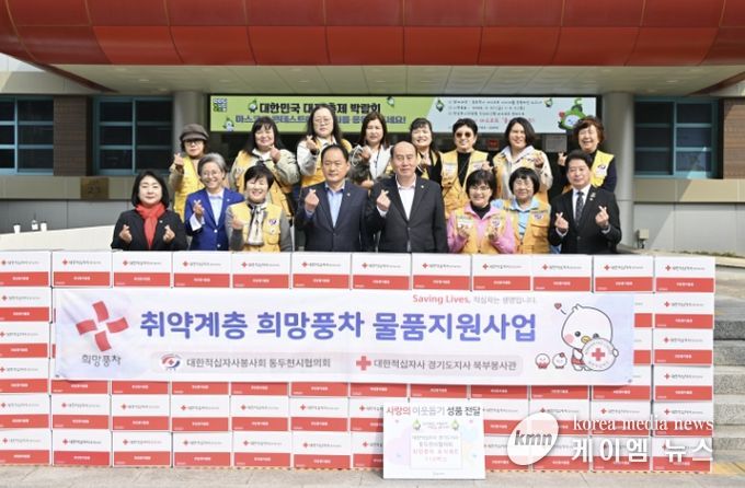 (케이엠뉴스) 대한적십자사 동두천시봉사회는 지난 27일 오전, 동두천 관내의 취약계층 지원을 위해 부식 세트 110상자를 지원했다고 밝혔다.
