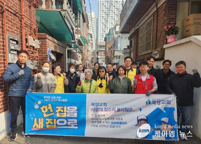 이번 봉사는 주거환경이 열악한 어르신 2가구를 대상으로 진행되며, 목양교회 공진수 담임목사를 비롯한 봉사자 15명이 참여해 방바닥 교체, 도배, 외부 덮지붕 설치, 침대와 장롱 교체, 외벽 방수, 화장실 계단 설치 등 전반적인 주거환경 개선 작업을 추진했다.