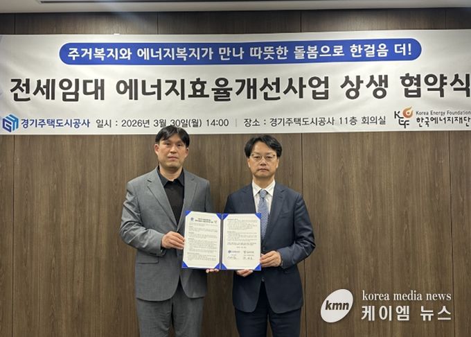 (케이엠뉴스) 경기주택도시공사(GH)가 수원 GH 본사에서 저소득층 주거환경 개선과 에너지 빈곤층 해소를 위해 한국에너지재단과 ‘전세임대 에너지효율 개선사업 상생 협약’을 체결했다고 30일 밝혔다.